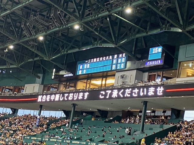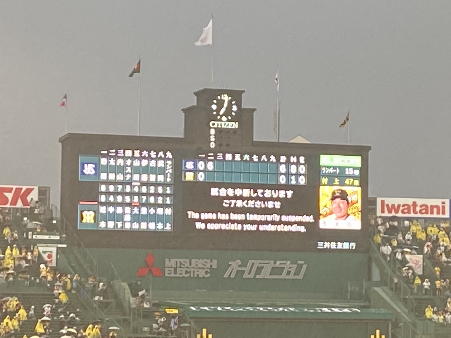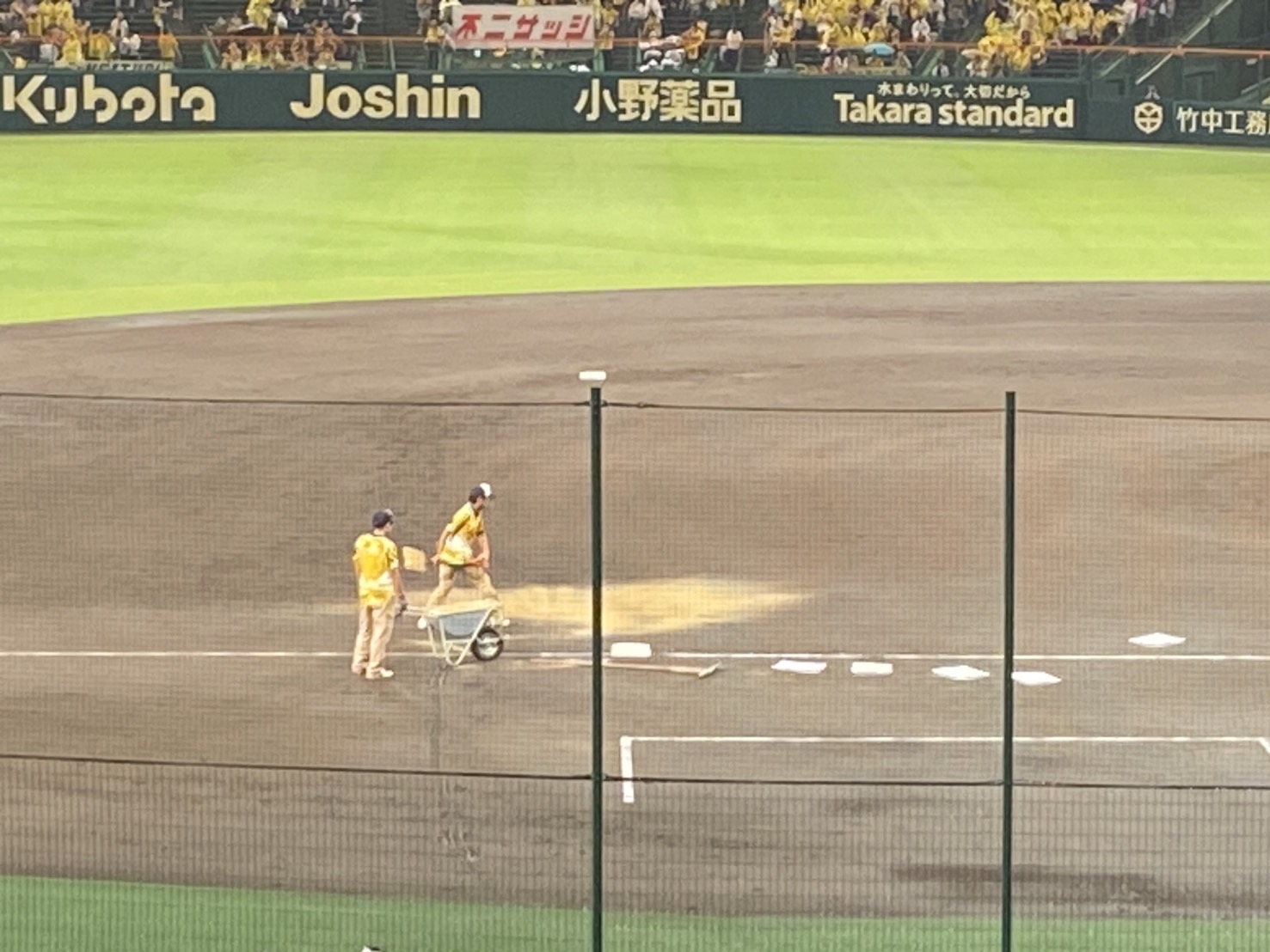 しかし、期待も虚しく雨は止みグランド整備が行われ試合再開となりました。